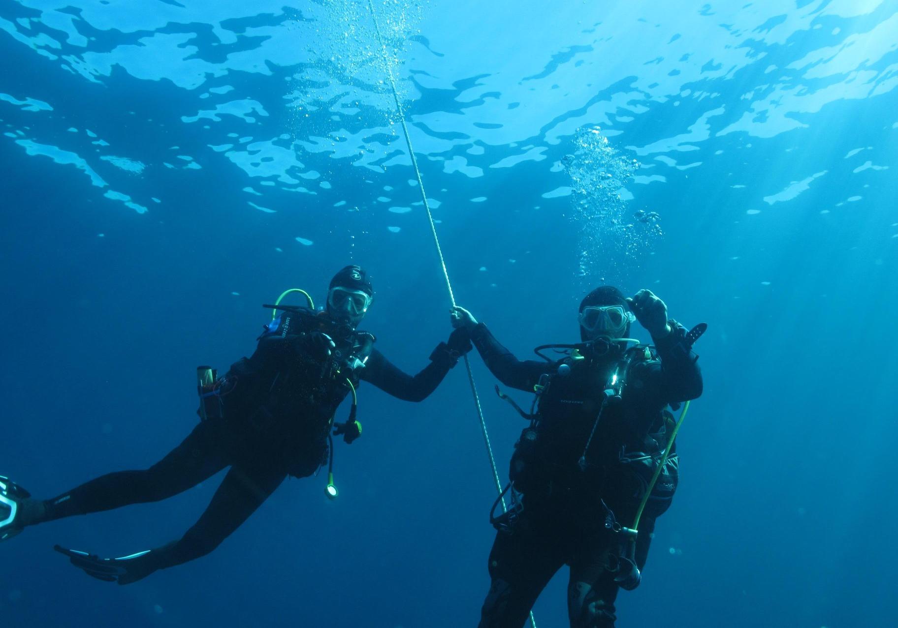 Plongées techniques et d’exercices en mer à partir du printemps suivant la formation hivernale en piscine.